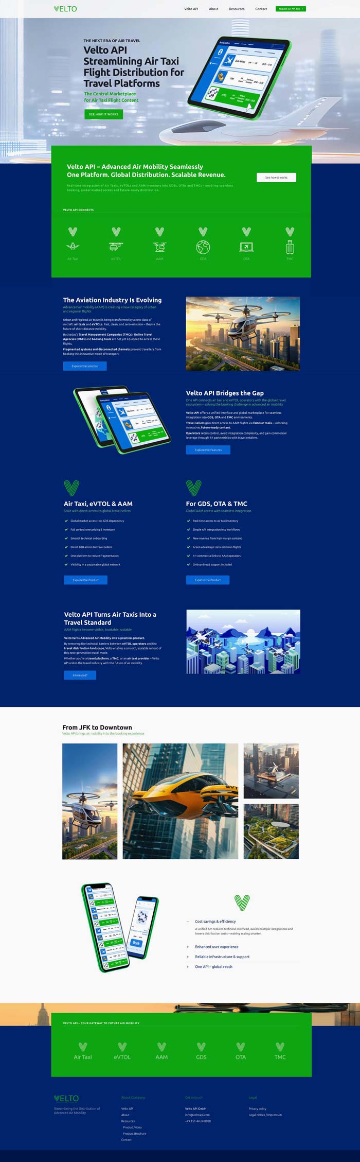 Die Website für Velto API schafft Orientierung für ein zukunftsweisendes Software-Produkt im Bereich von Advanced Air Mobility – von eVTOLs und Air Taxis bis hin zu neuen Distributionsmodellen für den globalen Reisemarkt – ohne Details vorwegzunehmen. Eine klare, reduzierte Struktur führt gezielt durch zentrale Aussagen und öffnet Raum für Dialog. Statt technischer Detailtiefe stehen Positionierung, Relevanz und Wirkung im Vordergrund – und machen sichtbar, wie Velto API als Softwarelösung neue Märkte adressiert und internationale Entscheider anspricht.
